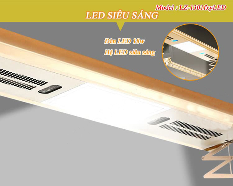 LZ-1301fxyLED tích hợp 2 quạt sấy công nghệ cao, giúp quần áo khô nhanh gấp nhiều lần, đặc biệt hữu ích trong những ngày nồm ẩm, mưa nhiều. Chức năng này cũng giúp giảm mùi hôi và ẩm mốc trên vải.