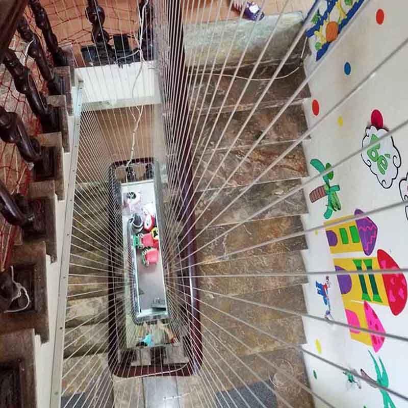 Cầu thang là khu vực có tần suất di chuyển cao, đặc biệt nguy hiểm với học sinh mầm non và tiểu học. Lưới an toàn cầu thang giúp bịt kín khoảng trống lan can, ngăn ngã từ trên cao nhưng vẫn giữ được sự thông thoáng và thẩm mỹ cho khu vực này.