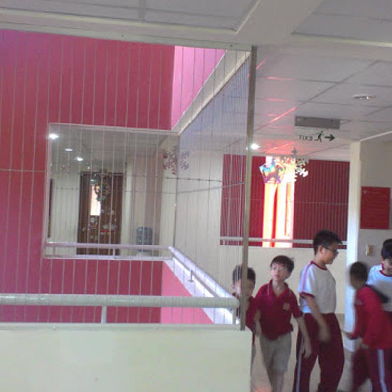 Ban công, hành lang ngoài trời là nơi học sinh thường tụ tập vui chơi. Lưới an toàn giúp hạn chế các hành vi nghịch ngợm nguy hiểm mà không gây cảm giác gò bó như lan can sắt hay rào chắn truyền thống.