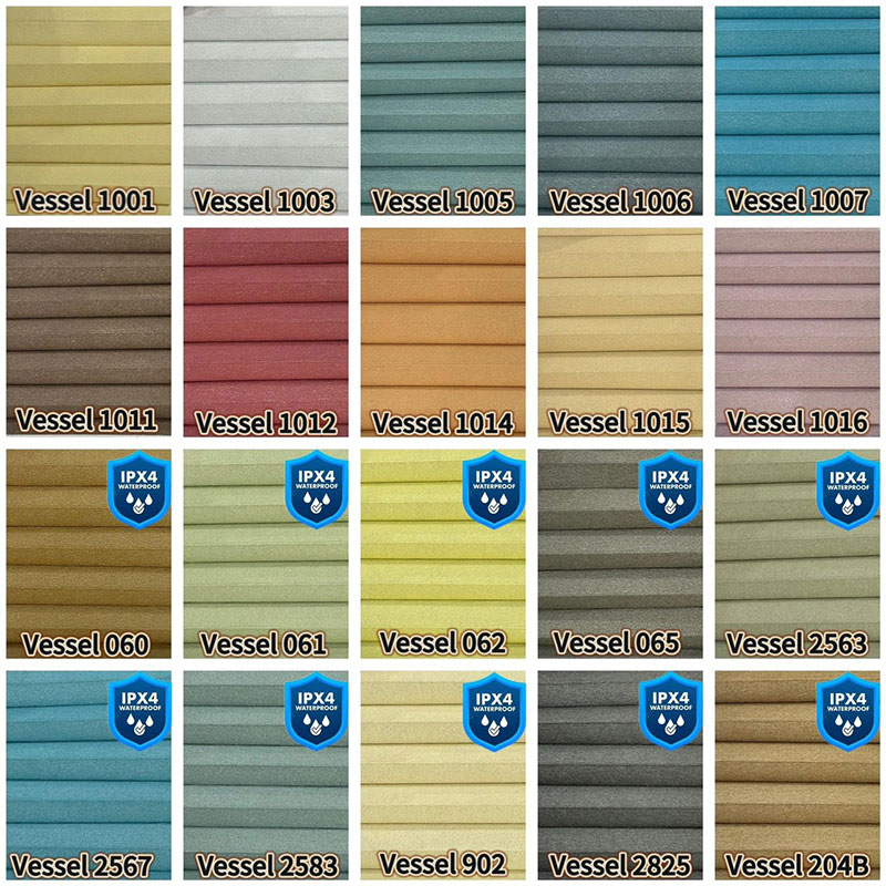 Vải polyester được xử lý chống thấm, chống phai màu và chống bám bụi. Cấu trúc tổ ong làm tăng khả năng giữ khí, tạo lớp cách nhiệt tự nhiên. Lớp bạc bên trong giúp phản xạ ánh nắng hiệu quả, giảm tối đa lượng nhiệt truyền vào phòng.